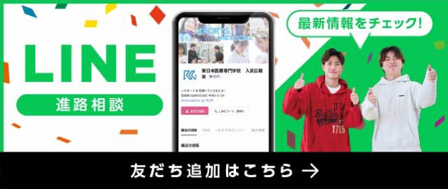 Departmentof Judo RehabilitationSports Science Departmentof Acupuncture and MoxibustionSports Science 柔道整復師メディカルトレーナー 元東北楽天ゴールデンイーグルスメディカルトレーナー宮町鍼灸整骨院(株式会社健生)勤務 鈴木 拓夢さん 一覧を見る 2026年 4月 19日 ご予約はこちら 2026年 5月 10日 ご予約はこちら 2026年 5月 24日 ご予約はこちら 2026年 6月 7日 ご予約はこちら 詳しく知る 募集についての情報はこちら 入試情報 詳しく知る 学費の詳細や制度を知る 学費案内 詳しく知る 最短ルートでプロの現場へ! プロスポーツトレーナーになるには!? Coming soon 公式アカウントをフォローして最新情報をチェック! @higashinihoniryo
